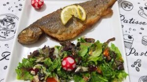 Balıkların sırtındaki sert ve barlı yüzeyi temizlemek için bıçakla kazıyoruz. Başını kestikten sonra kılçığı bir tarafta kalacak şekilde ortasından ikiye kesiyoruz. Ama birbirinden ayırmıyoruz. Güzelce yıkadıktan sonra önce tuzlayıp sonra her iki tarafını mısır ununa bulayarak tereyağında kızartıyoruz. Alabalık biraz tatsız bir balık olduğu için tereyağı ona çok güzel bir lezzet veriyor. Afiyet olsun…