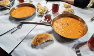 Sunum: Genellikle bakır sahanlarda, yanında taze ve sıcak köy ekmeğiyle servis edilir. Ekmeği banarak yemek buranın ritüelidir.